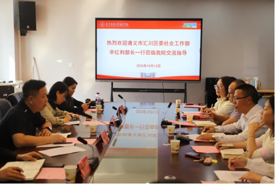 10月13日下午14时30分,遵义市汇川区委社会工作部部长辛红利一行莅临贵州民族大学社会学院进行交流指导。社会学院党委书记李黎、党委副书记裴凡苗、副院长卫松、副院长王晓晖、社会工作专业系主任胡彬彬、毕业班班主任以及社会学院专任教师代表均出席本次会议。双方围绕校地合作、协同育人、基层治理创新等议题进行了深入研讨,旨在共同探索社会工作赋能基层治理的有效路径。 图1 遵义市汇川区委社会工作部部长辛红利一行莅临...