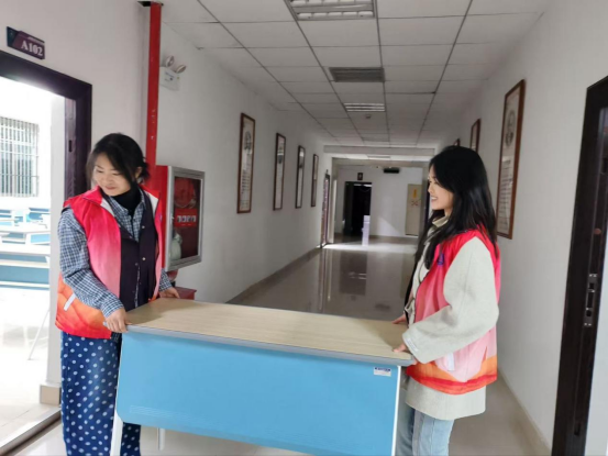 图1 志愿者们有序摆放教室座椅