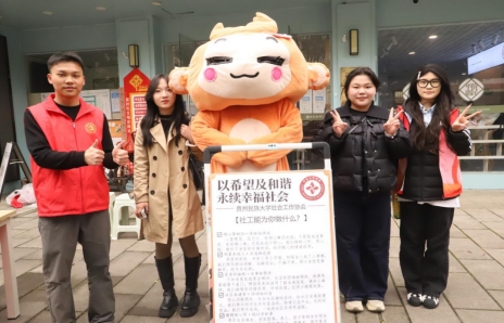 春风送暖,善意同行。2026年3月17日,迎来第20个世界社会工作日,本年度全球主题为“以希望及和谐,永续幸福社会”。为践行这一主题,彰显社会工作搭建人际联结、弥合社交隔离的核心价值,近日,贵州民族大学社会工作协会和社会学院青年志愿者协会分别在北校区足球场、花溪区十字街社区开展“社工在行动·携手筑和谐”主题宣传活动,让校内学子、社区居民与过往游客走近社会工作,感受社工力量。